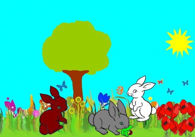 Aujourd’hui, c’était le dernier jour du printemps, le soleil brillait et les herbes étaient bien sorties de terre, toutes vertes et fraîches. Alors pour une fois, elle allait demander à ses frères et sœurs de l’emmener avec eux pour jouer, mais aussi pour cueillir plein d’herbes, pour ramasser plein de noisettes pour se régaler. C’est maman qui sera contente ce soir !