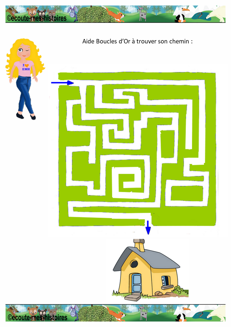 Pendant ce temps, arriva une petite fille qui était perdue dans la forêt. Elle s’appelait Boucles d’Or, car ses cheveux étaient frisés et blonds. Devant la maison et voulant demander de l’aide, elle frappa à la porte. Comme personne ne répondit, elle fit le tour de la maison et par la fenêtre ouverte, se glissa à l’intérieur.
