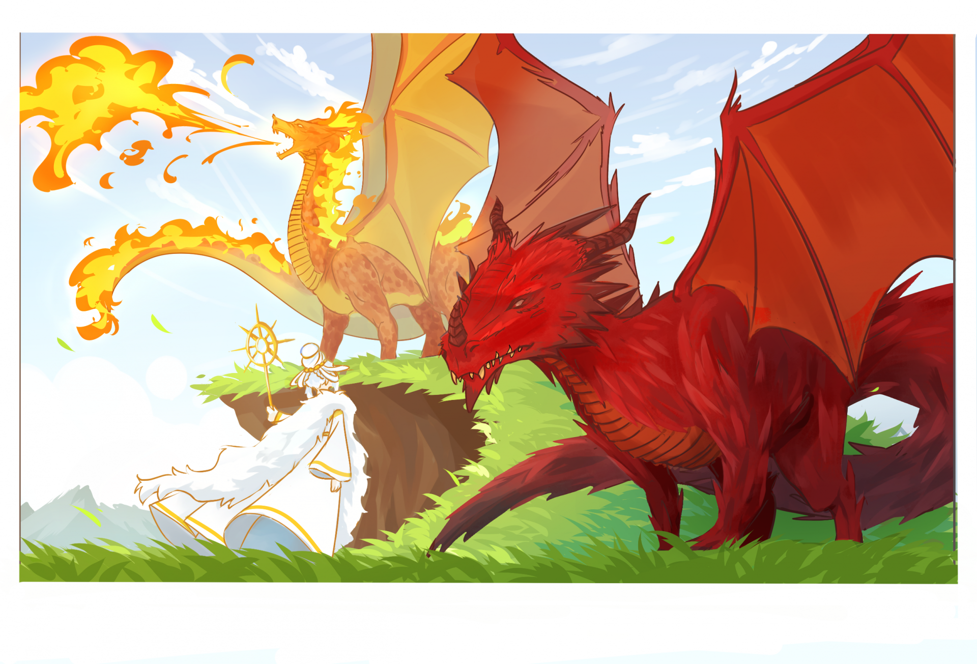 " Noble dame, toi seule contre des millions d'adeptes du dragon à 7 têtes. Laisse-moi t'accompagner avec tous mes ganas, " propose Dragon rouge plein d'enthousiasme.