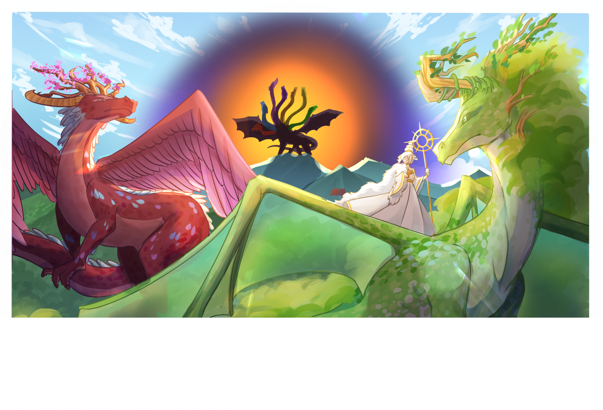 " Noble dame, nous sommes heureux d'avoir été choisis pour te servir. Nous te remercions de ta confiance envers nous, et sois assurée de notre dévouement. " dit Dragon d'Or.