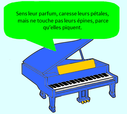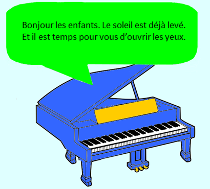 " Alors, c'est très bien que je sois là, avec vous. En jouant toutes les plus belles mélodies, la joie va revenir dans vos coeurs. Et je vais vous aider à vivre, grâce à ma musique. " dit Piano enchanté.