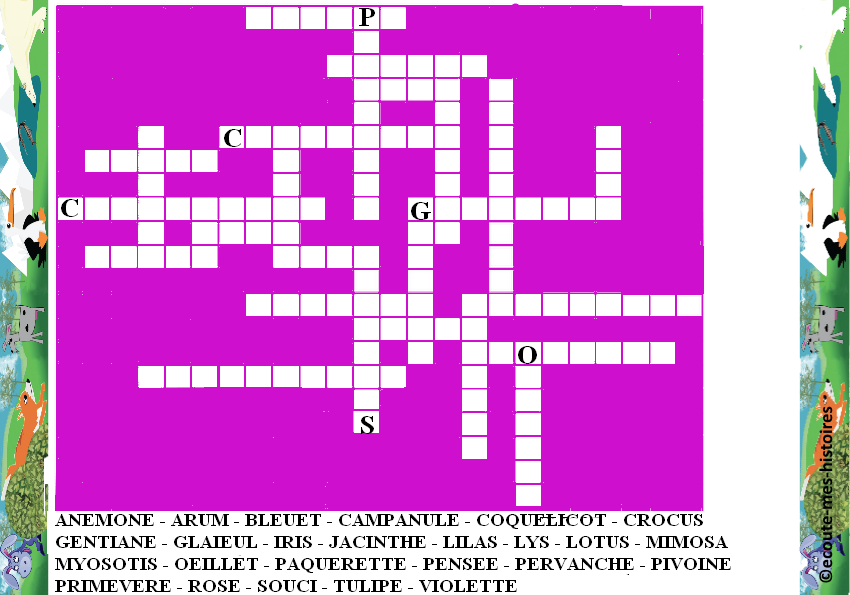 ACTIVITE EDUCATIVE : Mots fléchés de fleurs