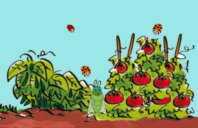 Aujourd'hui, Josée se cache derrière des tomates, avec les coccinelles.