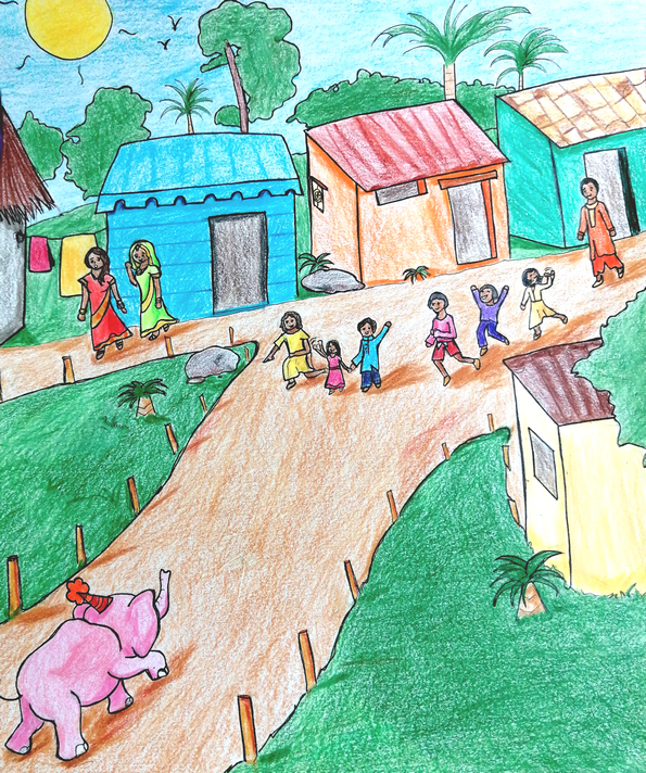 - Nous n'avons encore jamais vu d'éléphanteau de cette couleur. Tu es beau comme ça. Aussi, nous allons te prendre sous notre protection, tu seras notre mascotte. Vous êtes d'accord les enfants ? Demande le chef du village.