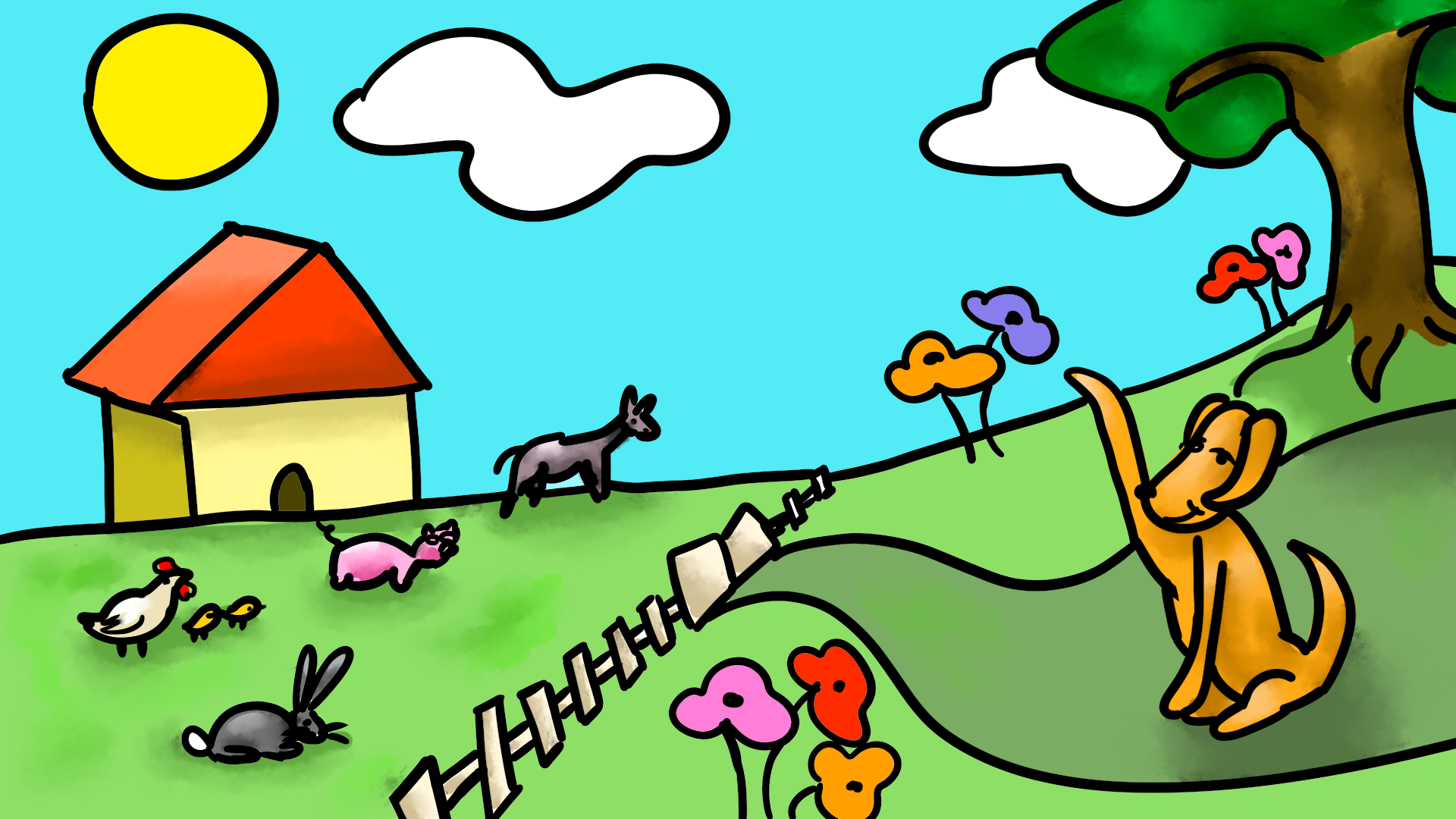 - Voilà, je suis très heureux avec vous tous, même si Cheval n'est pas toujours gentil. Mais grâce à vous tous, j'ai pu manger et vivre. J'ai grandi aussi, et comme vous, j'aimerais bien avoir une compagne.