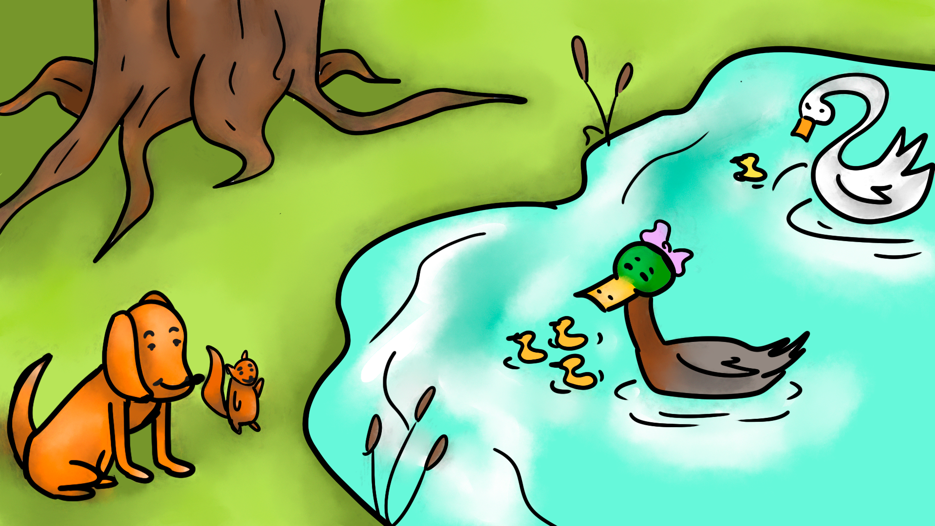 - Coin, coin, répondent en chœur les canards. Nous profitons de l'eau tant que le soleil est chaud. Bientôt, l'hiver sera là et ce sera de la glace, dit maman cane.
