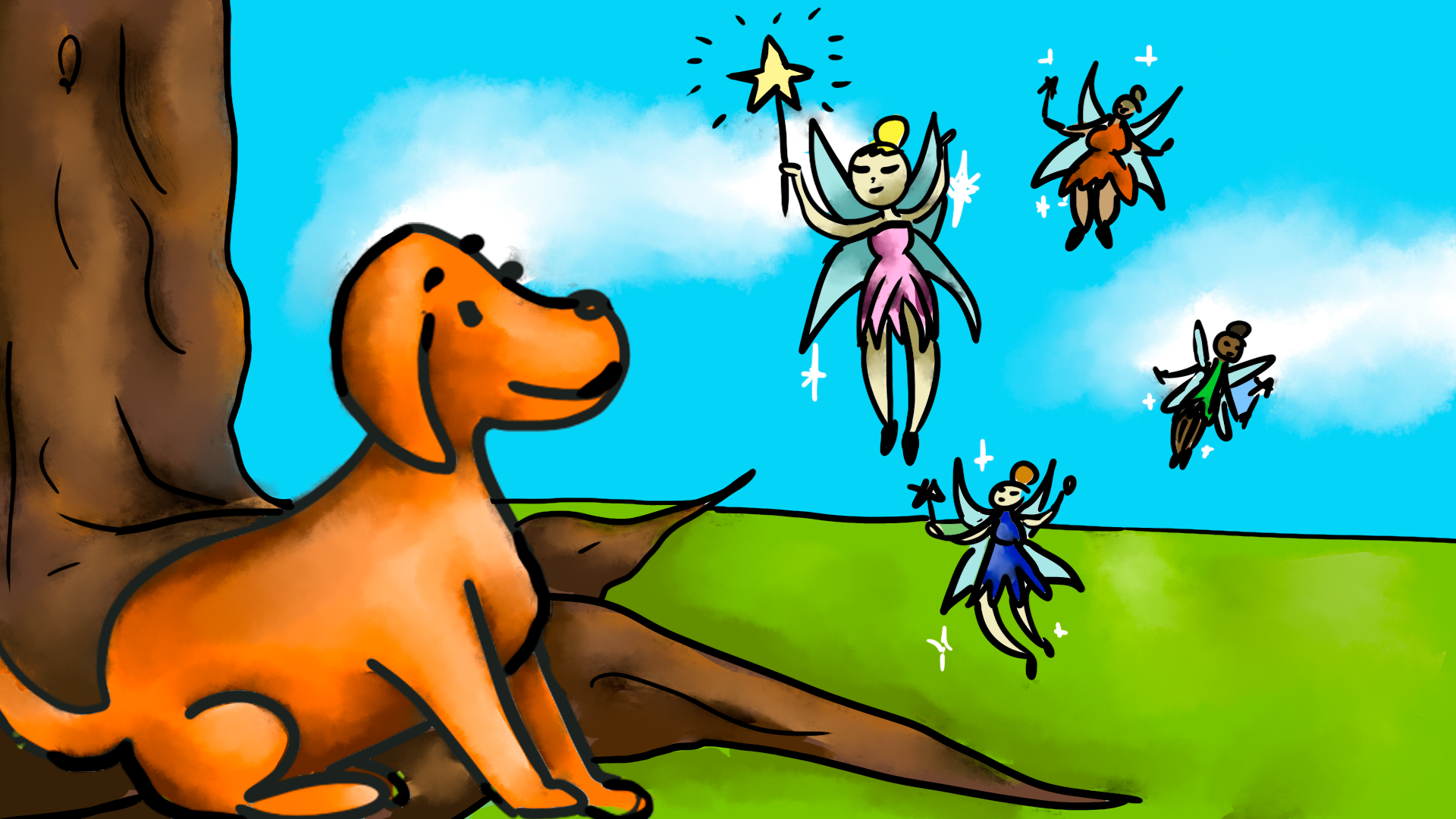 - On ne se connaît pas tellement, dit Fairie. Nous aussi, les fées, on aime vivre dans la forêt, dans les bois, dans les champs. Partout on s'amuse avec les fleurs, les arbres, les oiseaux, les animaux.