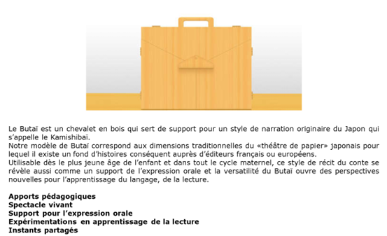 Elle est accompagnée d’exercices et de mise en situation, notamment avec un de nos outils pédagogiques : le butaï et le kamishibaï.